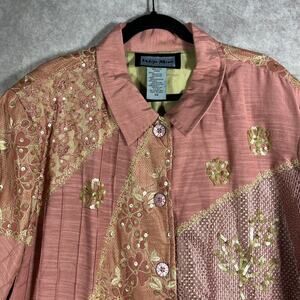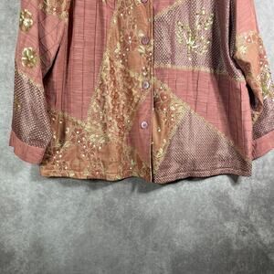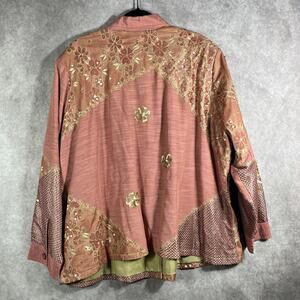 Indigo Moon Jacket Womens Size 3X Pink Floral Patchwork Sequin Artsy Mature Boho