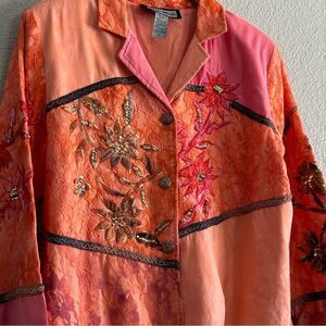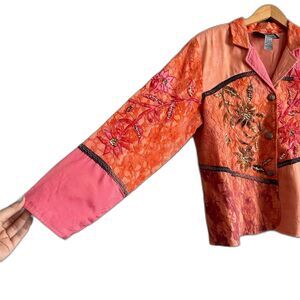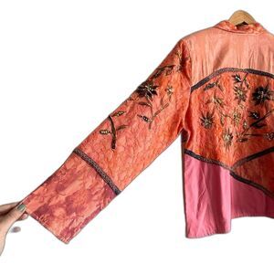 Indigo Moon Pink Jacket Embroidered Lace Sequin Embellished Velvet Sz Large Coat