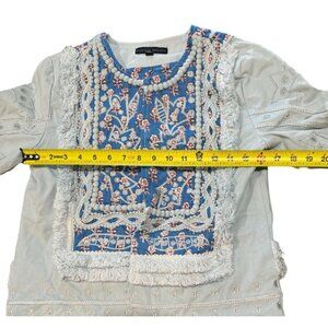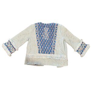 Indigo Moon Twill & Patterned Woven Trimmed & Embroidered Collarless Jacket