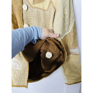 Indigo Moon Womens Jacket Sz S Patchwork Embroidered Brown Boho Button Up Artsy