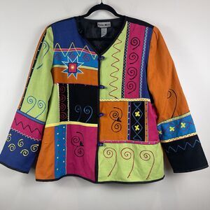 Indigo Moon Womens Patchwork Jacket Large Retro Avant Garde Art to Wear Boho