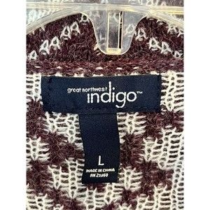Indigo Open Front Sweater Sz Large Cardigan Purple off White Diamond Knit Very good condition, no defects found. No rip, stains, snags, or pulling Approximate measurements Pit to pit 23" Sleeve 27" Shoulder to hem Length 33" Very soft sweater