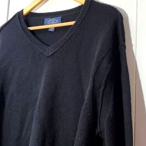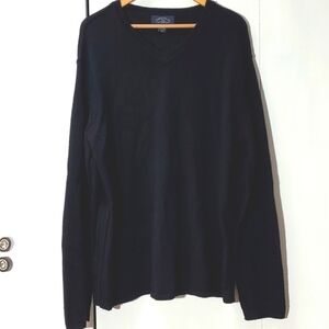 Indigo Palms- Mens Black Wool Cashmere Reverse Stitch Vneck Sweater Sz.XL