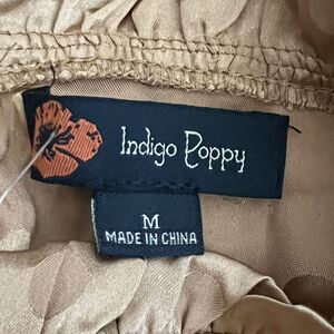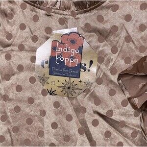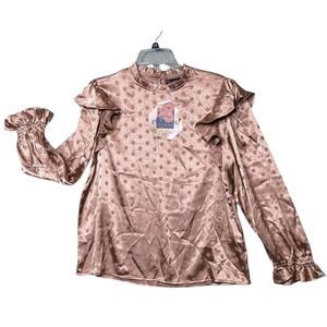 Indigo Poppy Blouse Womens Medium Rose Gold Polka Dot Satin Ruffle Mock Neck Top