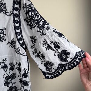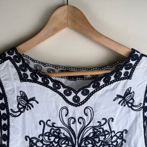 Indigo Poppy Boho Floral Embroidered Baby Doll Top Women’s Size M Blue & White