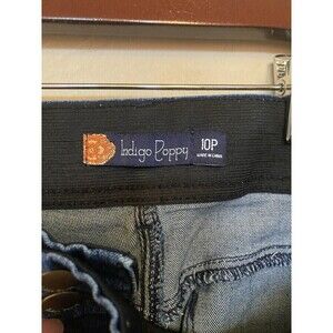 Indigo Poppy Denim Pants Womens 10P Blue Straight Leg Jeans Boho Hippie Western