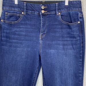 Indigo Poppy Flared Dark Jeans Women Sz 16 Elastic Waist High Rise Stretch