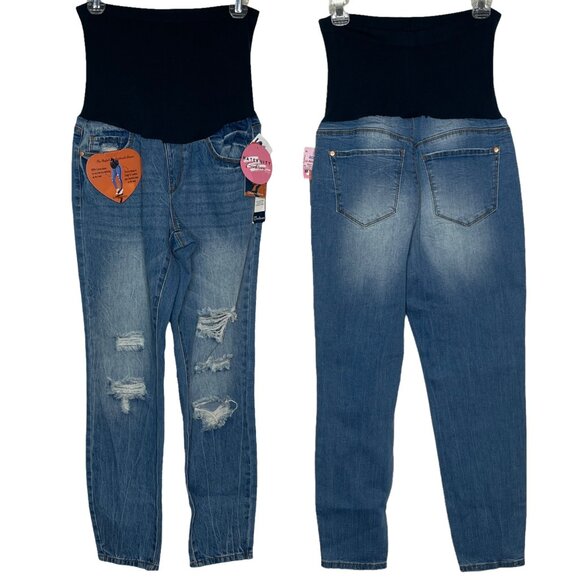 NWT Indigo Poppy Maternity Jeans Distressed Medium Wash, Belly Band, Full Panel, belly band to provide ample support.