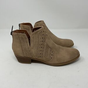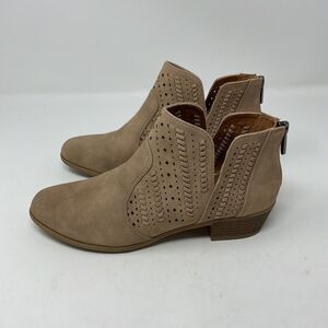 Indigo Rd Ankle Boots Womens 7.5M Taupe Suede Back Zip Cut Out Detail Shoes