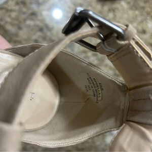 Indigo Rd. beige open toe block heels with ankle straps. GUC. Microsuede fabric. From a pet and smoke free home.