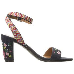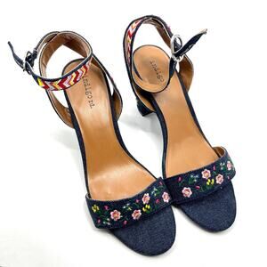 Indigo Rd Blue Multicolor Floral Embroidered Denim Open Toe Block Heels Size 8