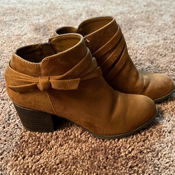 Like new brown booties can go with anything. I’m great condition, smoke free home