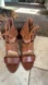 4 inch heel. Stylish brown strappy block heel sandals with a lace-up design. And zipper in back for easy on and off. In excellent condition