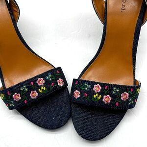 Indigo Rd Embroidered Floral Blue Denim Heels Irbadie Open Toe Size 7.5M Boho