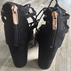 Indigo Rd Gladiator Lace Up Back Zip Black 4" Suede Heels Shoes size 8