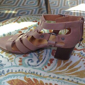 Indigo Rd., Gladiator Sandals, "7.5" Bohemian, Classic, Girlhoodcore, Gladiator. Faux Leather, Beigy pink color; Back Zip, 2" Block Heels, No overwear; Great condition; used only a couple of times. Gently pre-loved.