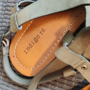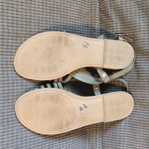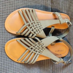 These beautiful sandals feature a basket weave design with an adjustable ankle strap and they are olive in color. Size 9.5.