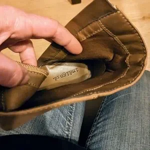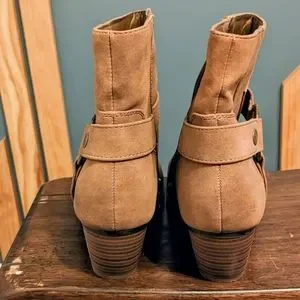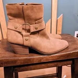 like new, hardly worn, size 8.5, very comfortable. tan suede material
