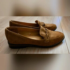 size 8 brown loafers by Indigo Rd. gently worn, a few signs of wear, but lots of life left in them!