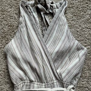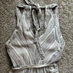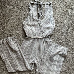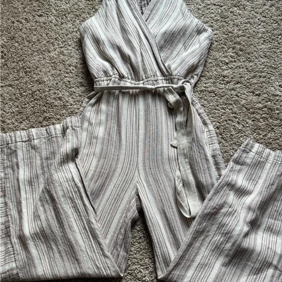 Indigo Rein Beige and Gray Striped Jumpsuit