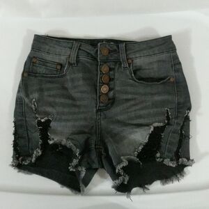 Indigo Rein Black Cutoff Distressed Denim Button Fly High Rise Shorts - size 0