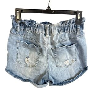 Experience the perfect blend of style and comfort with these Indigo Rein blue jean shorts. Featuring a relaxed fit and a trendy distressed look, these shorts are ideal for casual outings. The light wash denim and cuffed hem add a touch of vintage charm to your wardrobe. Also has elastic band for ultimate comfort.