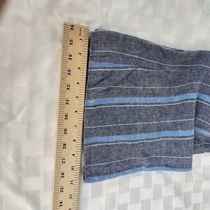 Indigo Rein Blue Striped Linen Flat Front Six Button Distressed Hem Pants Size 7