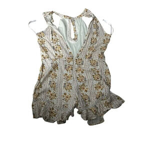 Indigo Rein Floral Halter Romper M Multicolor Crochet Ruffle Hem
