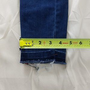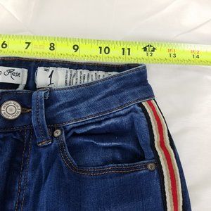 Indigo Rein Jeans Juniors 1 Mid Rise Ankle Distressed Stripe Accent Blue Denim