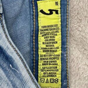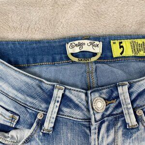 Indigo Rein Jeans Size 5 Light Blue Denim Distressed With Raw Hem and Selvage
