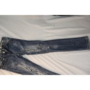 Indigo Rein Junior Blue Light Washed Stretch Distressed Skinny Jeans Size 3