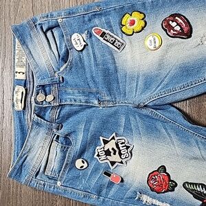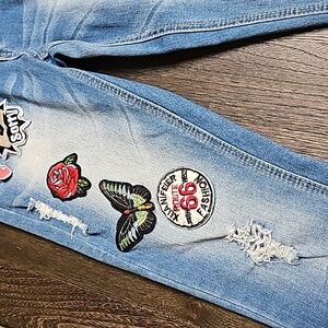 Indigo Rein Juniors' Patch Ripped Skinny Ankle Jeans Fun Patches & Pins Size 3
