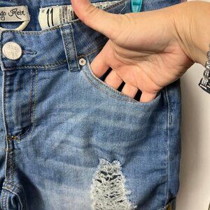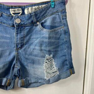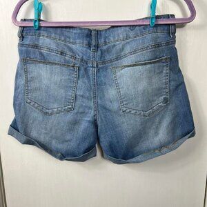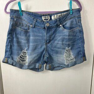 Indigo Rein Light Wash Distressed Denim Shorts Rolled Cuff High Rise Size 11