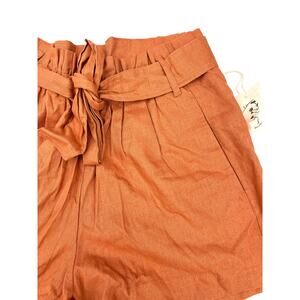 Indigo Rein Linen Blend Women's Paper Bag Orange Pheasant Shorts Size Medium NWT