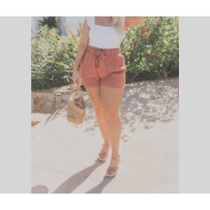 paper bag, vsco, 90s, linen, vacation, resort wear, lightweight shorts, italy, pumpkin, terra cotta, short shorts, trendy, super cute, orange shorts, cruise wear, shorts with pockets, summer, spring, fall