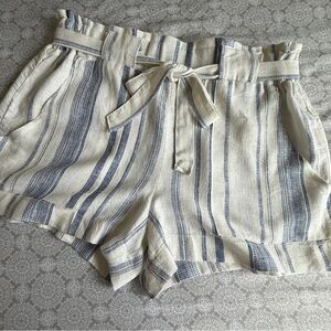 Indigo Rein Linen-Blend Paperbag Shorts Size XL Blue & White Striped