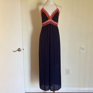 Indigo Rein Navy Blue Boho Maxi Summer Dress Size Medium