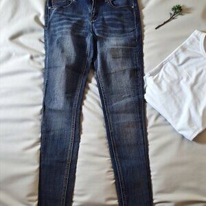 Indigo Rein Skinny Jeans – Dark Wash Distressed Stretch Denim – Size 27/27
