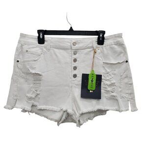 Indigo Rein Woman's White Super High Rise Frayed Button Fly Short NWT Plus 32/17