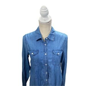 Indigo Rein Women’s Medium Wash Blue Chambray / Denim Button-Front Soft Cotton Rayon Blend 2 Pockets with Buttons on the Chest Collared Long Sleeve Mini Boyfriend Shirt Dress Sz Small. This dress is preowned and in very good condition.