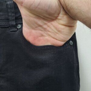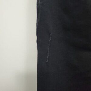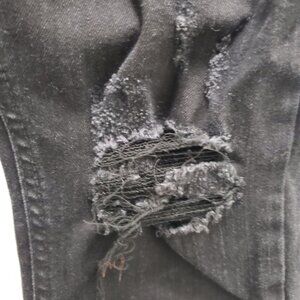 Black wash denim w/ factory distressing/rips