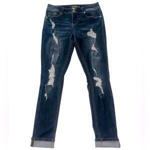 Indigo Rein Women's Distressed Cuffed Ankle Blue Jeans Mid Rise Size 30 Waist
