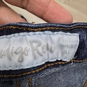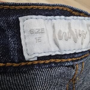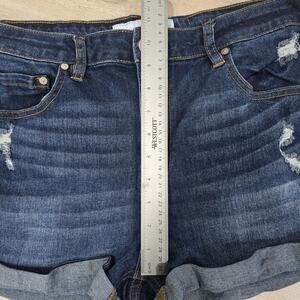 Indigo Rein Womens Distressed Denim Shorts Size 15 Dark Wash Cuffed Travel