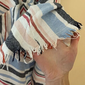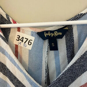 Indigo Rein Womens Linen Shift Dress Small Striped Sleeveless Fringe V Neck