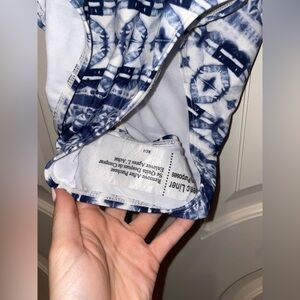 Make a splash this summer in this brand new Indigo Rein one piece swimsuit featuring a trendy blue and white Aztec tie dye design. The high leg cut elongates your legs while the comfortable medium size ensures a perfect fit. This swimsuit is perfect for lounging by the pool or hitting the beach in style. The eye-catching print will surely turn heads and make you stand out among the crowd. Indigo Rein is known for their quality and stylish swimwear, and this swimsuit is no exception. Don't miss out on adding this chic and flattering piece to your swimwear collection!