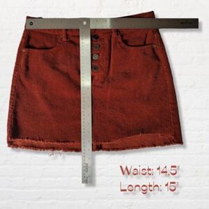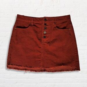 Indigo Rein Burnt Orange Corduroy Mini Skirt Button Closure Size 5/26