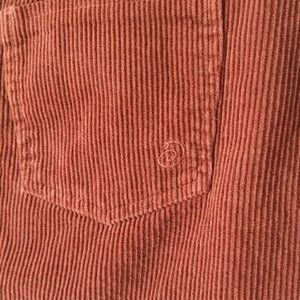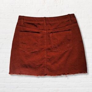 Super cute burnt orange corduroy mini skirt with pockets and a 5 button closure - Raw edge hem