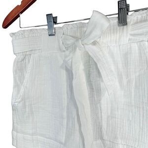 Indigo Rein Women’s Medium White Linen Style Belted Shorts Pockets