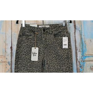 Indigo Rein Women's Size 7 Olive Green Leopard Print Ankle High Rise Skinny Jeans