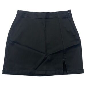 Indigo Rising Black A-Line Mini Skirt Faux Leather Black Size M Side Zip Slit